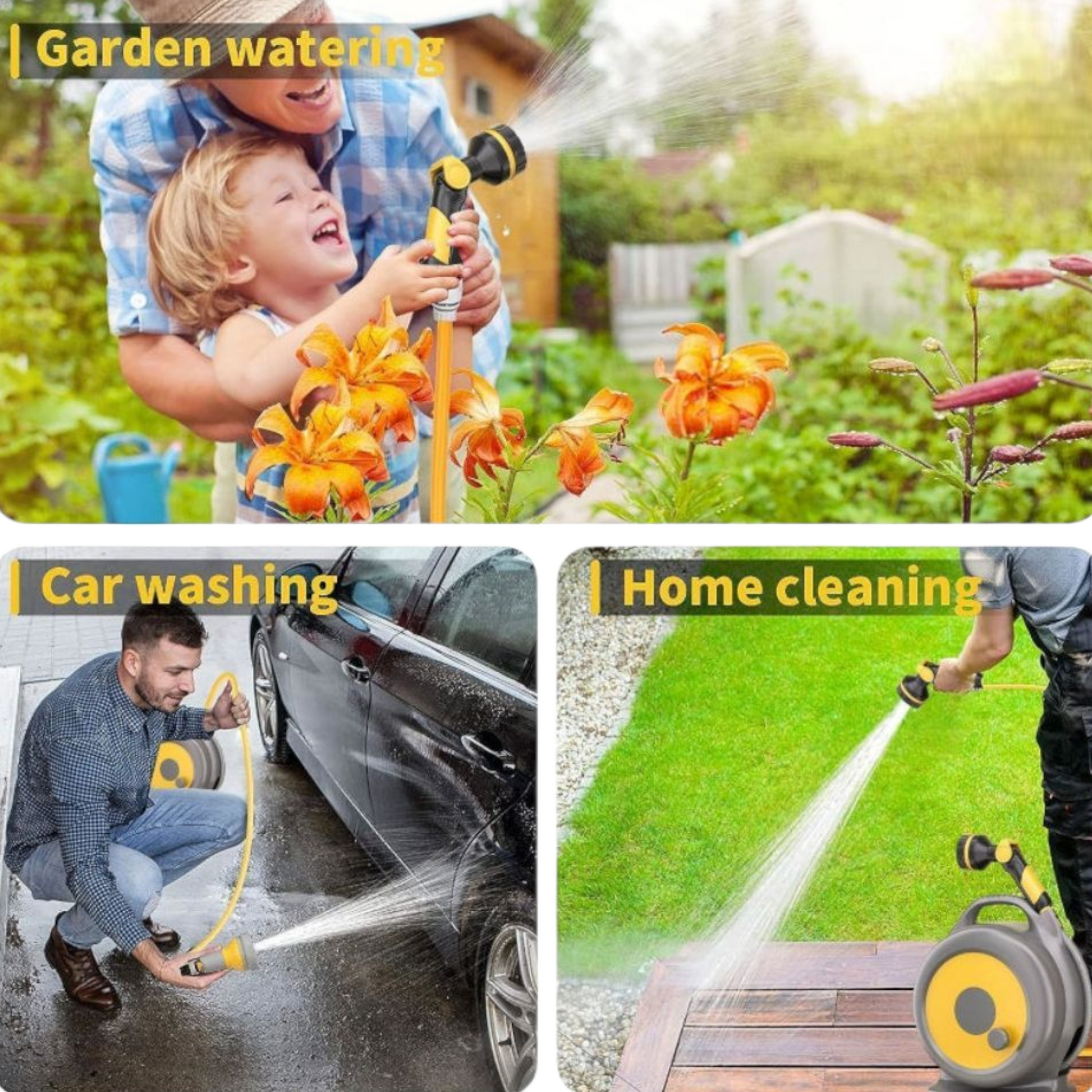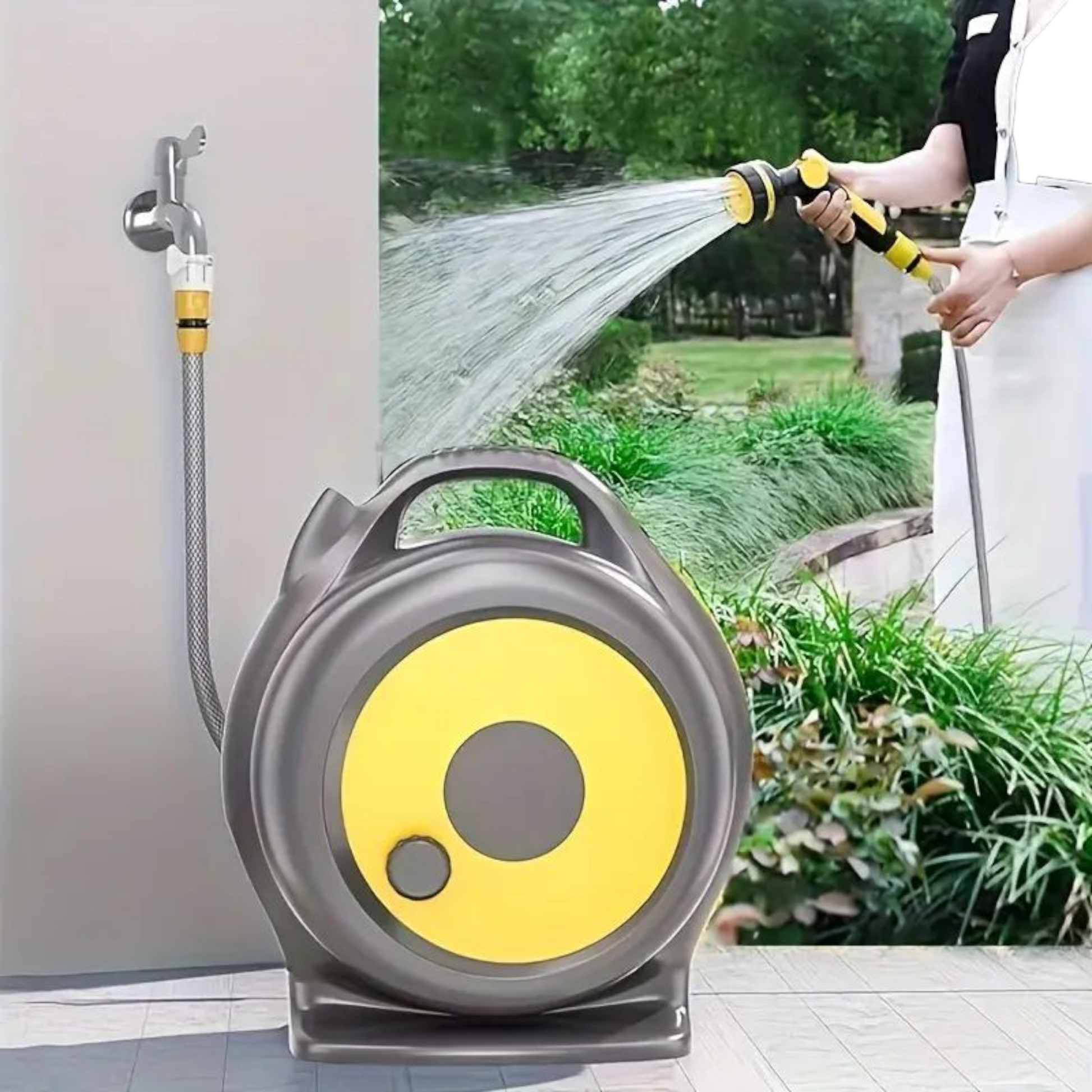U paketu dolazi i prskalica s podesivim ventilom, koja nudi više različitih načina prskanja – savršeno za zalijevanje cvijeća i travnjaka, pranje automobila, terasa ili čak tuširanje kućnih ljubimaca.